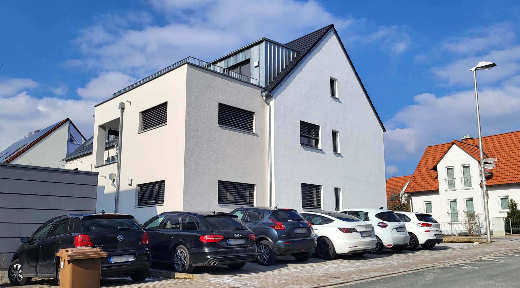 Ein großzügiges Einfamilienhaus aus den 1960er Jahren mit nicht ausgebautem Dachboden wurde zu einem Dreifamilienhaus umgebaut und durch einen Anbau erweitert. Der alte Dachstuhl wurde abgebrochen und durch ein neues steileres Dach mit Gauben ersetzt. Nach der Kernsanierung ist nun ein technisch und energetisch hochwertiges Wohnhaus mit drei 3- bis 4- Zimmerwohnungen entstanden. An das Mehrfamilienhaus wurde eine profilgleiche eigenständige Doppelhaushälfte angebaut. Jede der vier Wohneinheiten verfügt über großzügige Terrassen-, Loggia- bzw. Dachterrassenflächen.